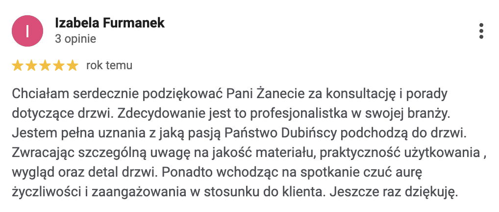 W Manufaktura Dubiński pomagamy podejmować decyzje, które zostają na lata. Analizujemy detale wpływające na wygodę, wygląd i trwałość Twoich drzwi.